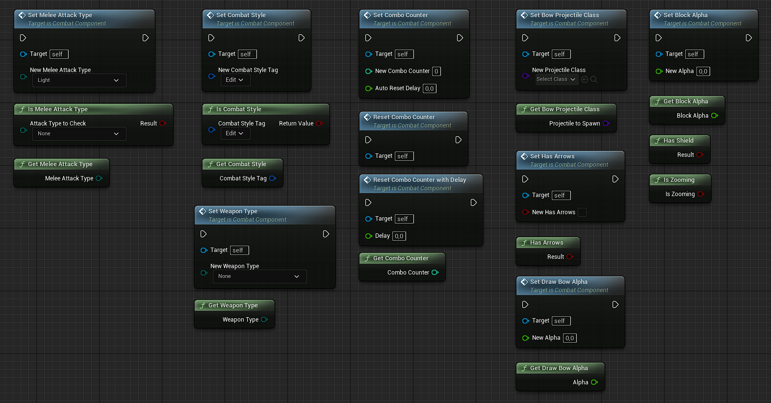 Thanks to that, combat logic and data can be accessed from other places in the system without need to cast to specific character blueprint.