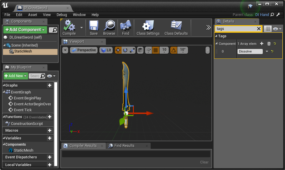It means that if we want any item used by AI to have this effect applied, it should have tag Dissolve on its components.