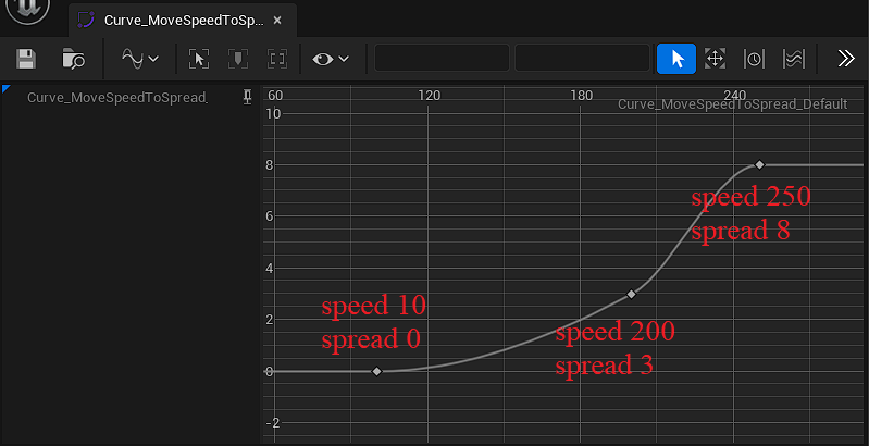 MoveSpeedToSpreadCurve - How movement speed of gun owner should affect spread angle.