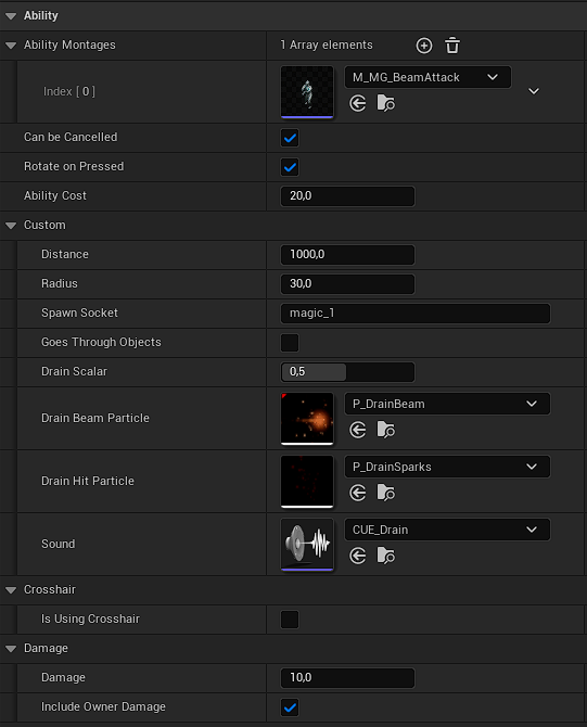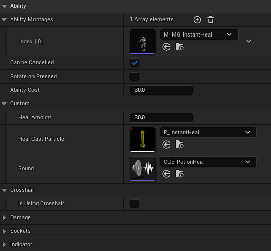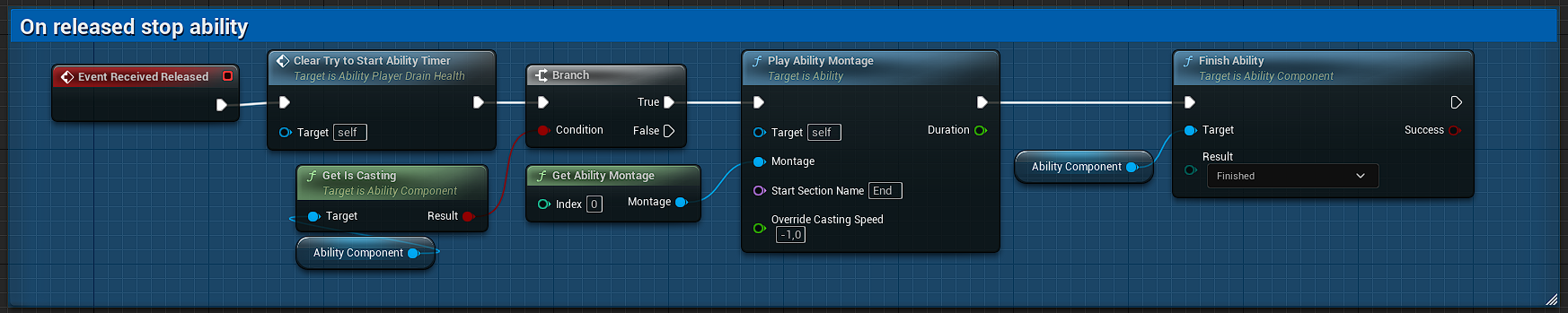 Instead it observes if ability input is released, then it tries to start ability using function from AbilityComponent, if return value was true, then it plays ability montage.