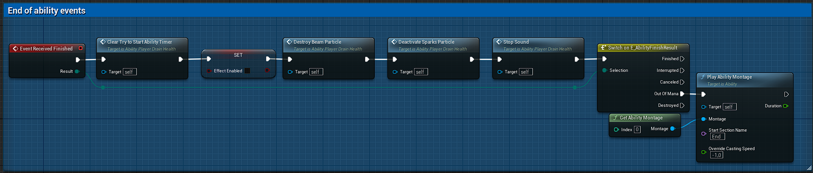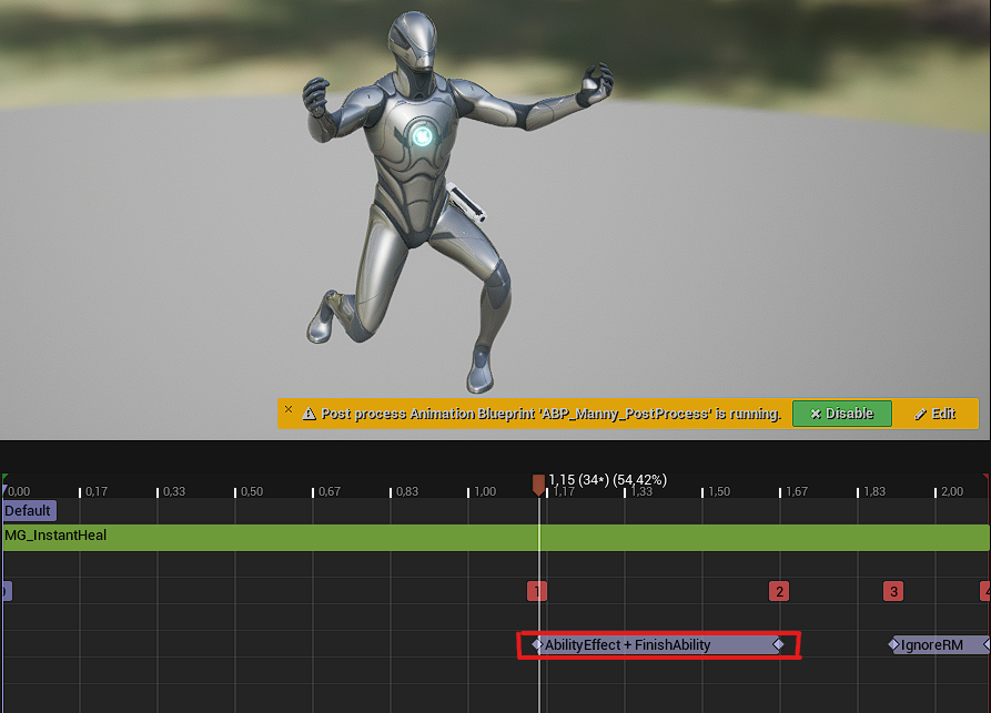 Heal Montage has ANS_AbilityEffect_WithFinish notify in it.