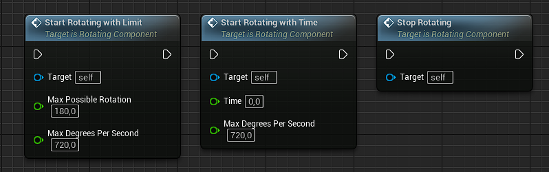 To start or stop rotating towards desired rotation you can use one of the following functions from RotatingComponent