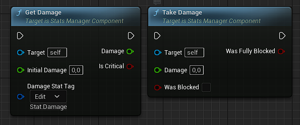 And also has function to take damage where it will automtacicaly scale taken damage by armor and calculate how much stat should be removed from stamina if owner was blocking and how much from Health.