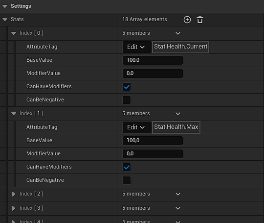 There can also be defined relation between 2 stats such as Health and MaxHealth / Stamina and MaxStamina.