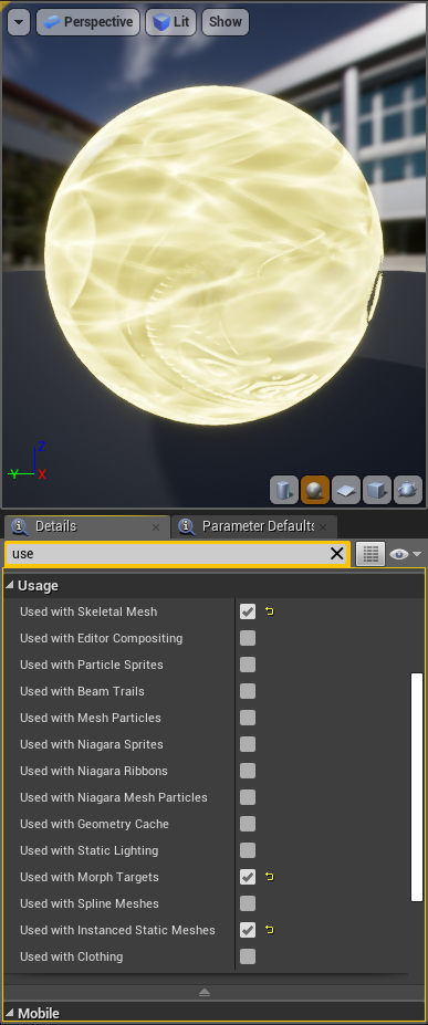 Example of tag Dissolve would be sword's static mesh in DI_GreatSword.