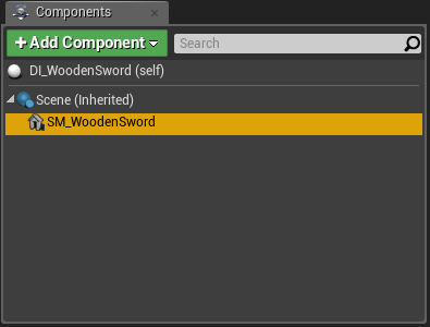 Make sure to go back to object item blueprint and change it’s displayed item class to DI_WoodenSword.