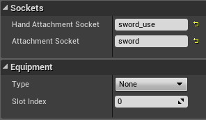 - HandAttachmentSocket - socket used when character is in combat