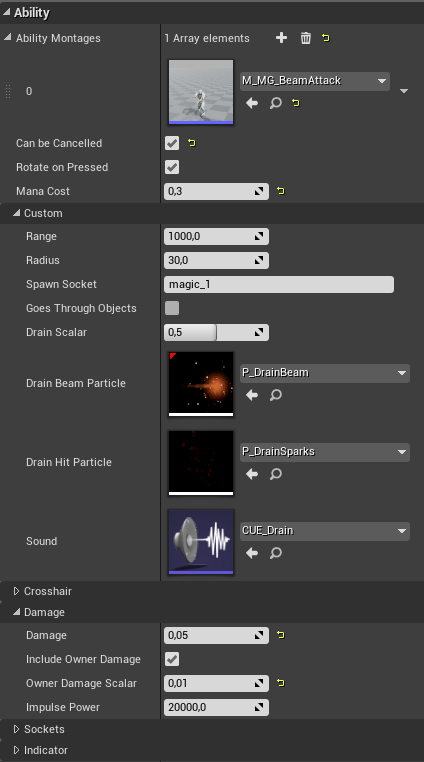 - LeftHandSocket - socket name of left hand ablity spawn spot