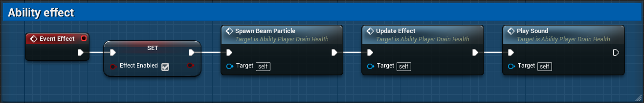 Event Effect is setting EffectEnabled variable to true, then spawning beam particle and sound.