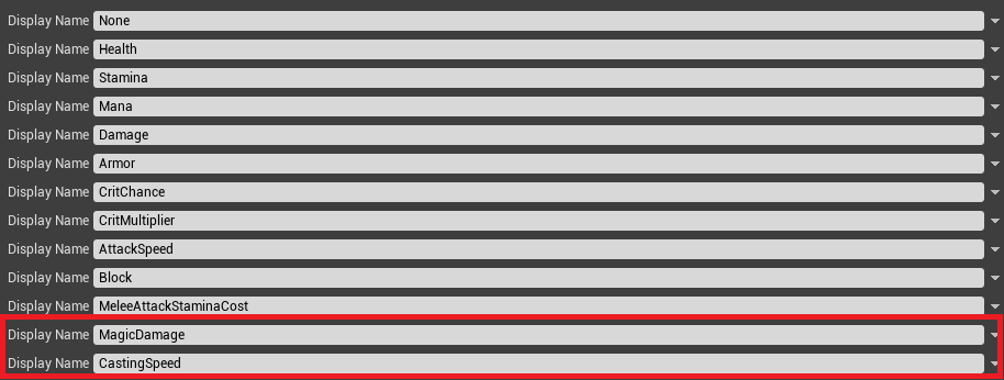 Added new values MagicDamage & CastingSpeed.