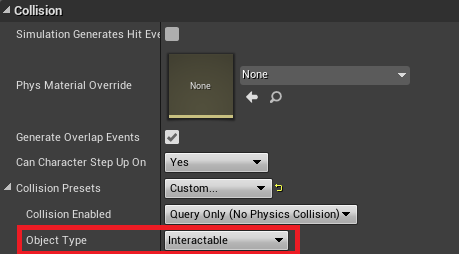 Add static mesh and same box as in previous blueprint (remember to set its collision type to Interactable).