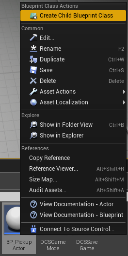 What I'm gonna do, is to make BP_PickupActor as base class, and make few children out of it which will be customizable.