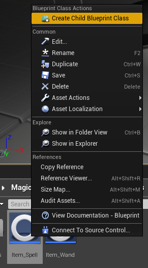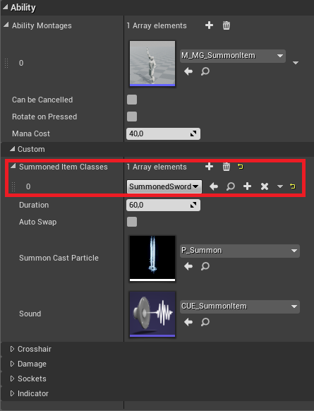Now that item which will be summoned is ready, create child blueprint from Ability_Player_BaseSummonItem and name it Ability_Player_SummonSword.