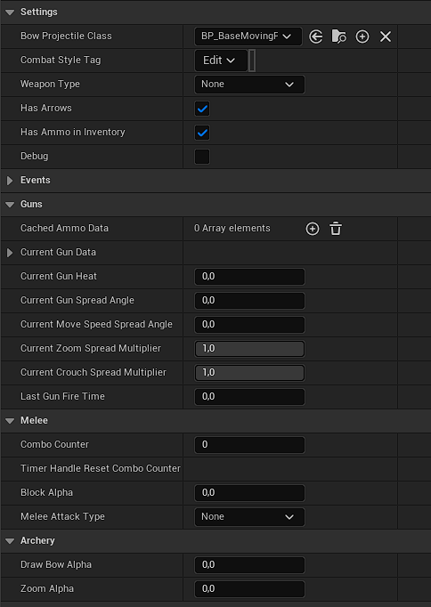 Thanks to that, combat logic and data can be accessed from other places in the system without need to cast to specific character blueprint.