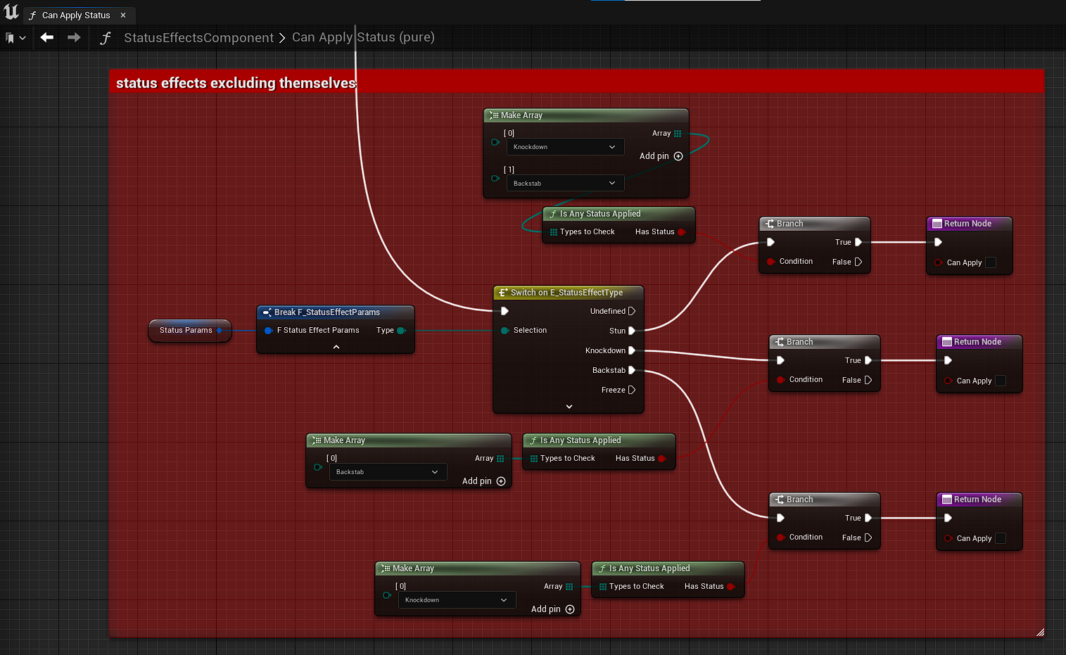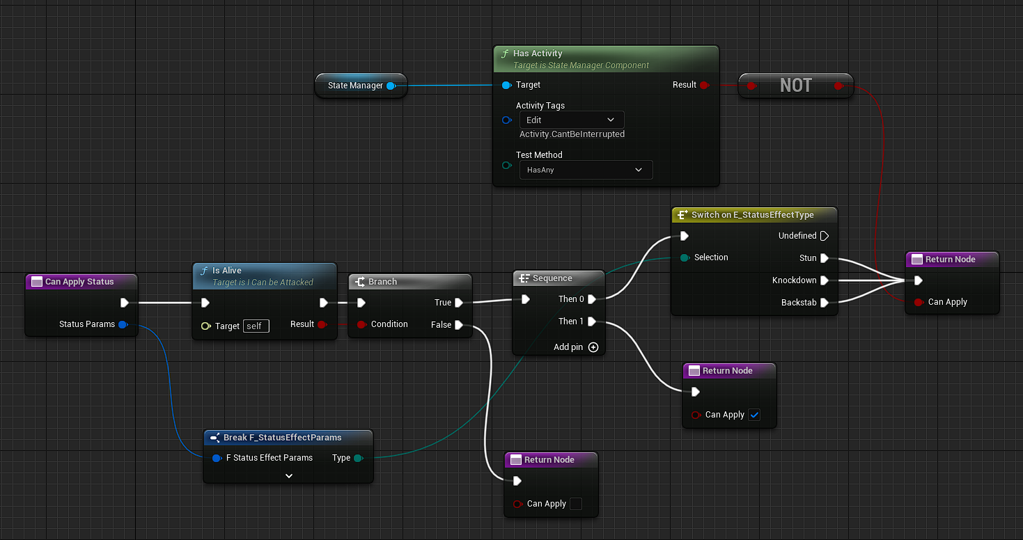 Additionally StatusEffectsComponent implements its own similar logic whether status effect can be applied.