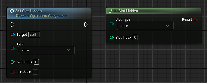 These functions are used to modify IsHidden state of slot, but generally you wont need to modify it as EquipmentComponent handles it by itself.