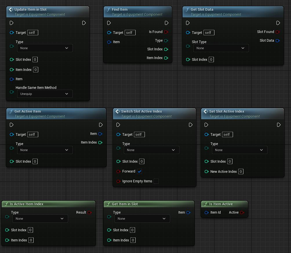 item that is currently equipped is defined by ActiveItemIndex and it can be changed in runtime, which will allow owner to switch from Steel Sword to Great Axe -
