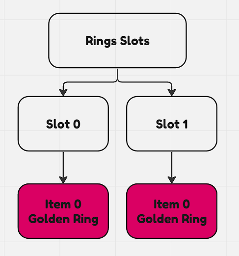 - each slot has 1 item as there is no need to switch active ring during game as we do with weapons