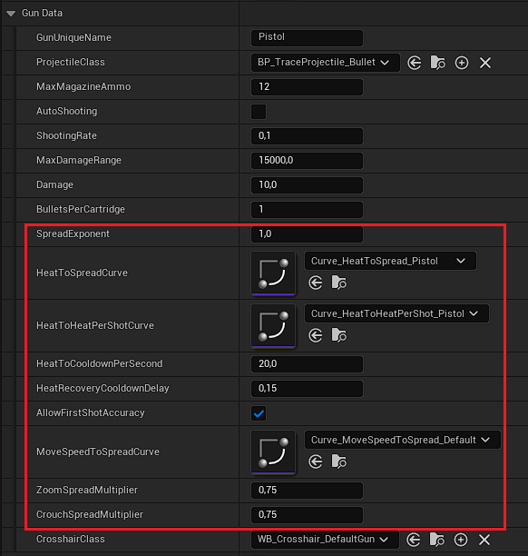 You can notice how crosshair extends to max value after single shot. - HeatToCooldownPerSecond - How fast heat wears off per second