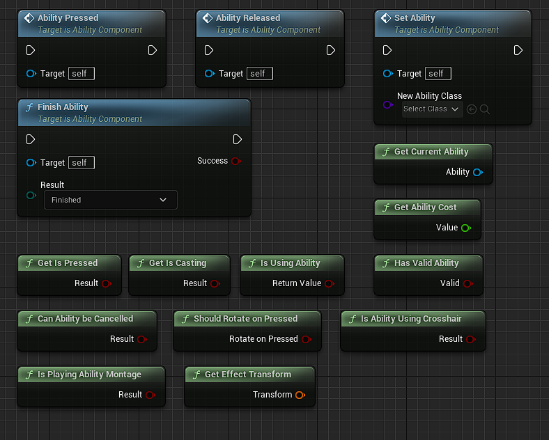 instead it calls functions from AbilityComponent, which in turn informs about it Ability itself.