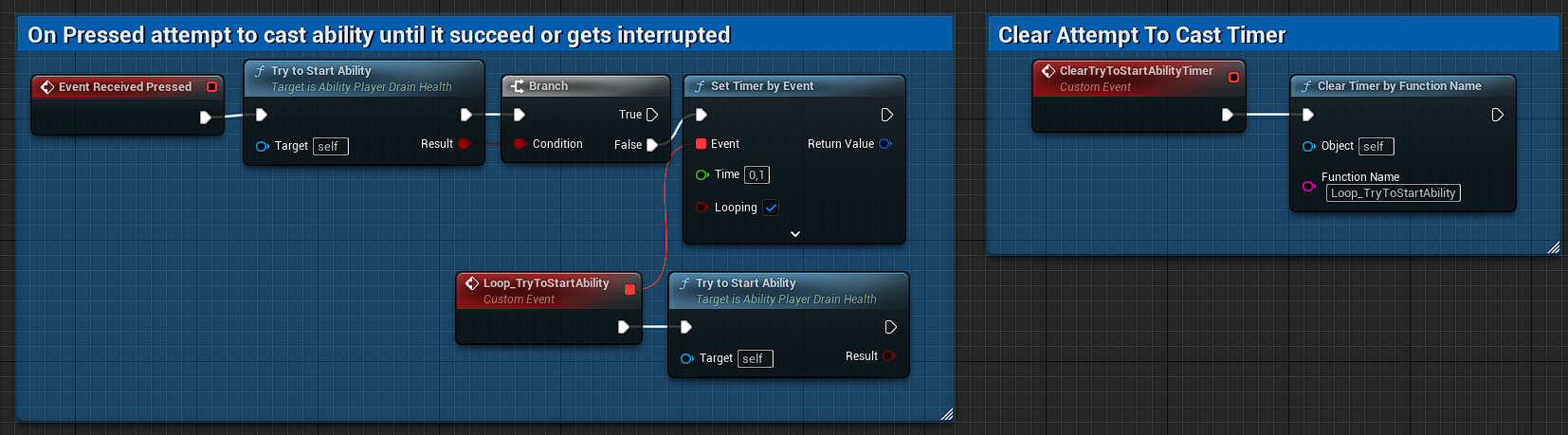 On pressing Ability input, it tries to cast, but if it fails then sets a timer which will continue to attempt, until ability is Released or Ends.