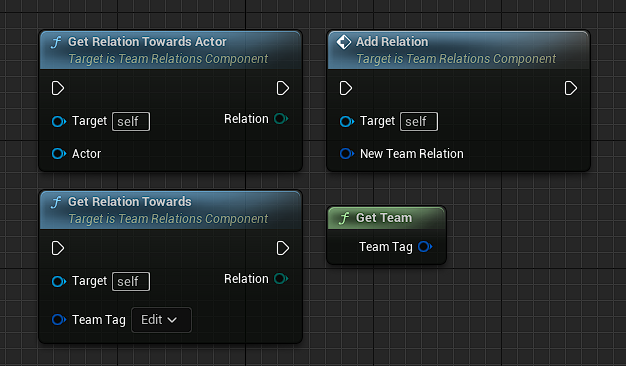 Relations are used for example in AI perception logic to select target actor or when attacking actors, to apply damage only to hostile actors.