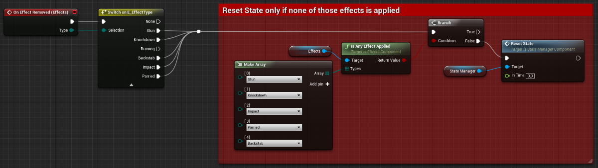 When stun effect is applied, AI will activate function Stunnned and set it’s state to Disabled etc.