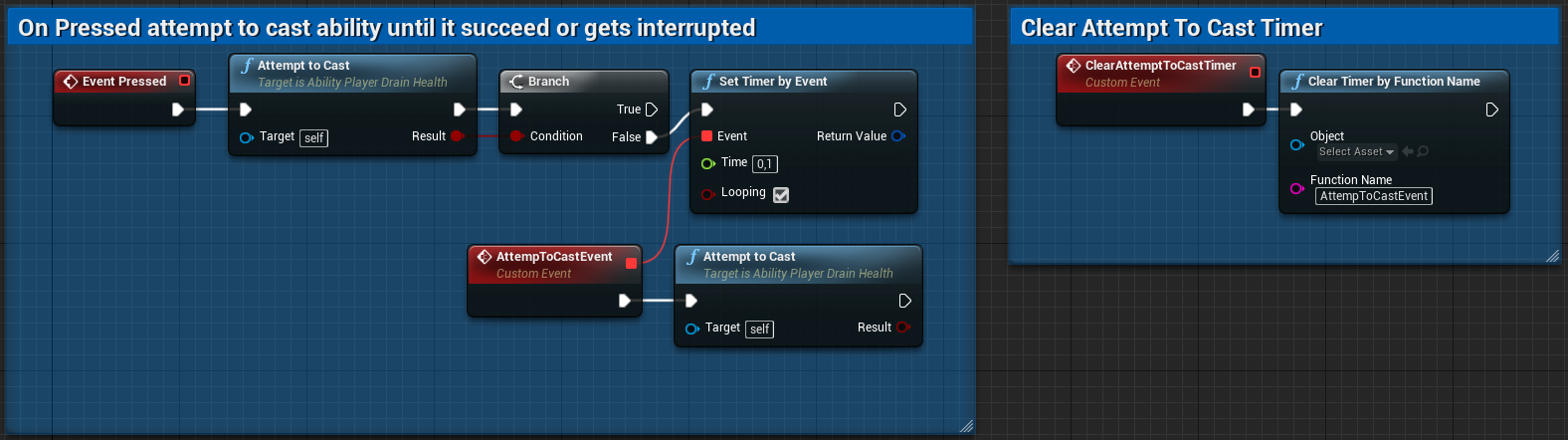 Whenever ability is Pressed, it tries to cast it, but if it fails then sets a timer which will continue to attempt, until ability is Released or Ends.