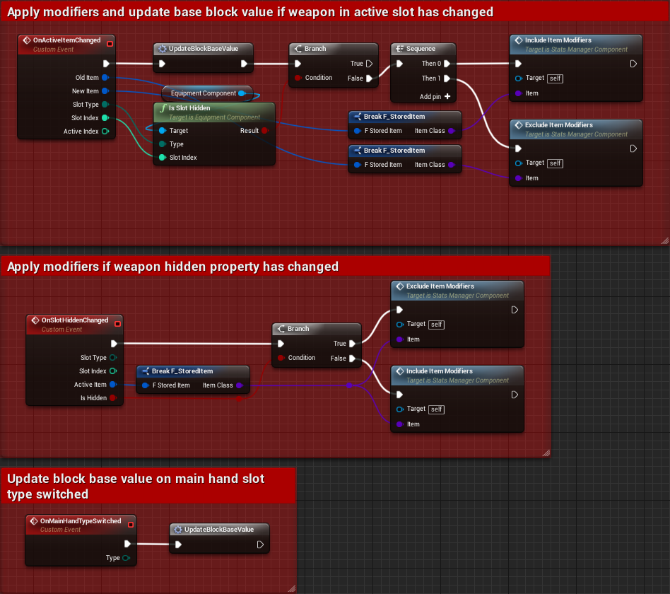Whenever item / slot changes, modifiers from old item are removed, and modifiers from new item are added.