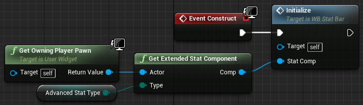 It has variable of type E_StatType which is used on widget construct to find ExtendedStatComponent in owning pawn and initialize widget.
