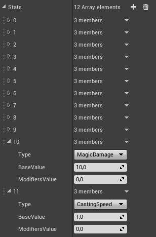 Added new values MagicDamage & CastingSpeed to Stats array.