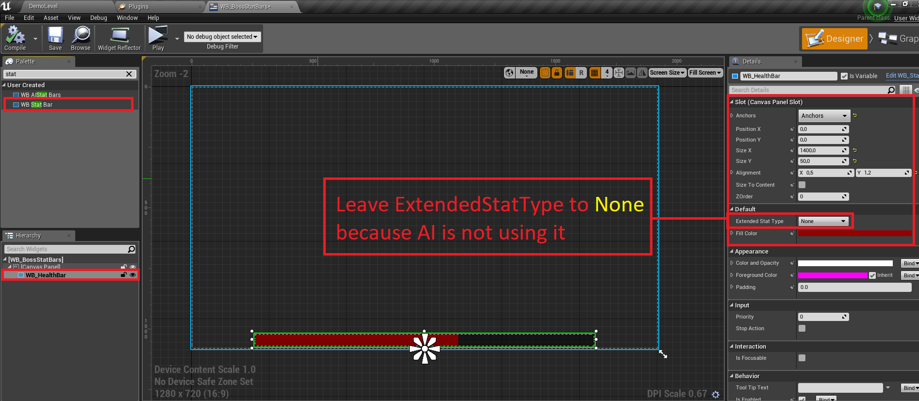 How to display boss health bar widget in the bottom of the screen instead of standard widget above AIs head.