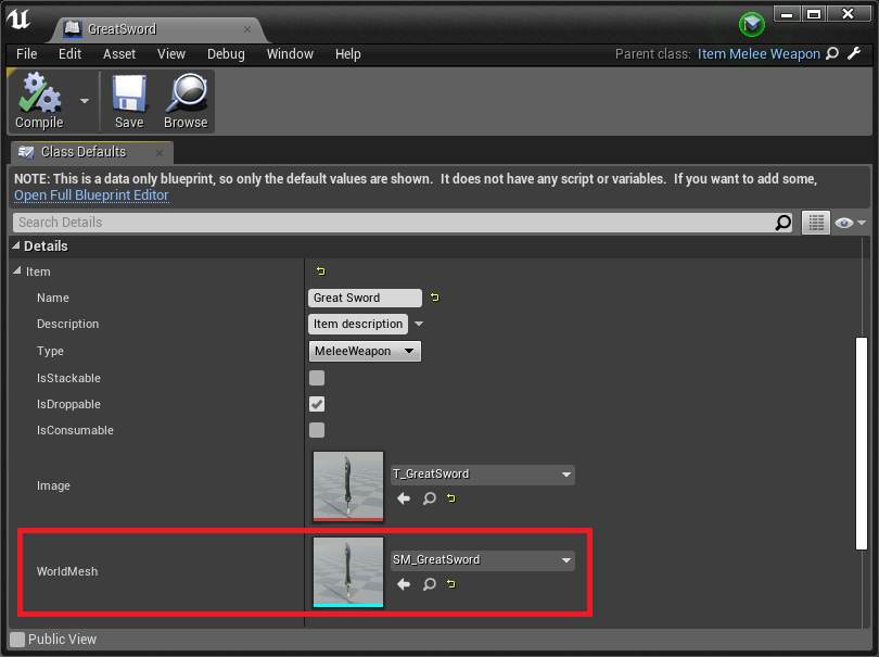 Finally let's modify BP_PickupActor_StoredItem which will be displaying stored item.