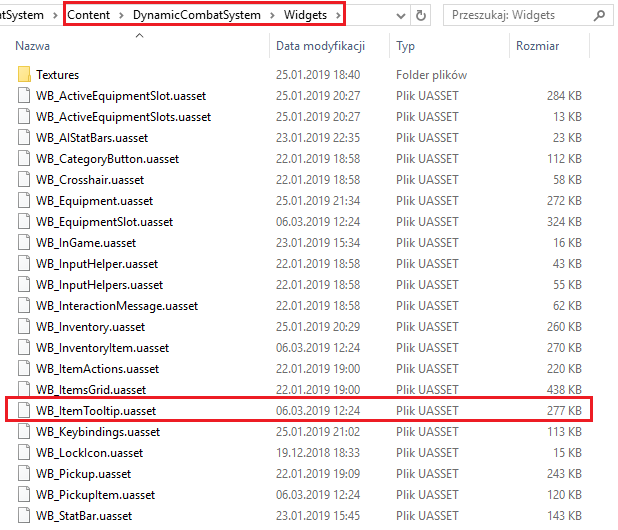 If you decided to download the file, paste it into Content/DynamicCombatSystem/Widgets folder, skip creating widget section and move to setup.