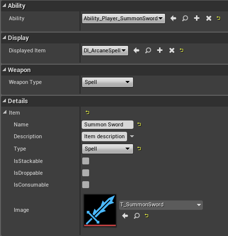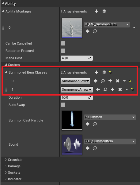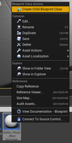 Now that item which will be summoned is ready, create child blueprint from Ability_Player_BaseSummonItem and name it Ability_Player_SummonSword.